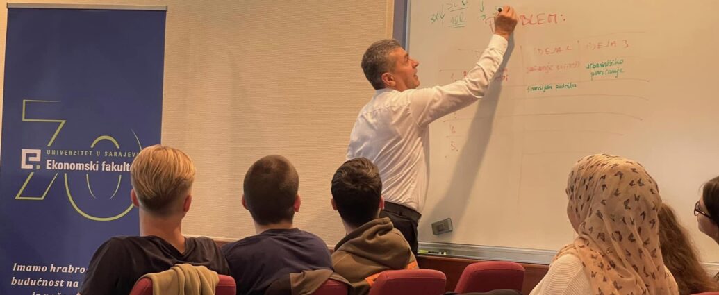 Ispred Uprave Fakulteta, učesnicima se za regionalni krug takmičenja, prvo se obratio prodekan za međunarodnu saradnju – doc. dr. Emir Kurtić, koji je srdačnom dobrodošlicom pozdravio sve prisutne učesnike, istaknuvši važnost međusobnog partnerstva s ciljem poticanja mladih na proaktivan pristup učenju iz oblasti biznisa i ekonomije.